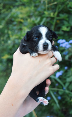 Bennett is 12.5 inches tall, with a beautiful long thick coat. He has two dark brown eyes and a natural bobbed tail. He is registered with the ASDR. Bennett is fun loving and always ready for an adventure. He enjoys hiking with us as well as snuggling at home, he is very good at matching our energy. Bennett is mid-drive and enjoys learning new tricks. We have started foundation agility work training with him and thus far he is excelling. He is a goofy and sweet boy, and passes on this sweet temperament to his puppies.